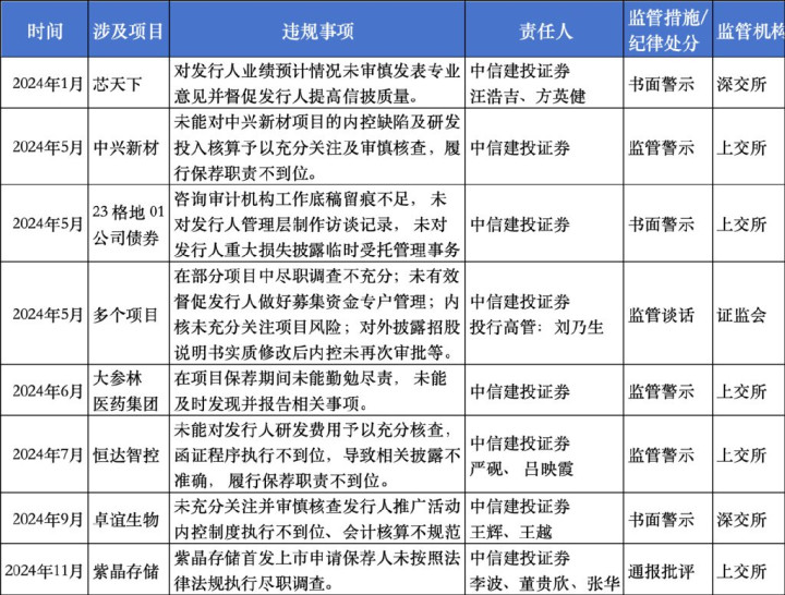 据统计,自2024年以来,中信建投证券共计被证监会和交易所采取监管措施或纪律处分8次,并涉及多名责任人。